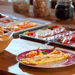 Keramikhotel Goldener Brunnen מציע ארוחת בוקר בופה חינם. האורחים יכולים לסעוד בבר יין Brot und Wein, אשר נמצאת במרחק של 100 מטר בערך.